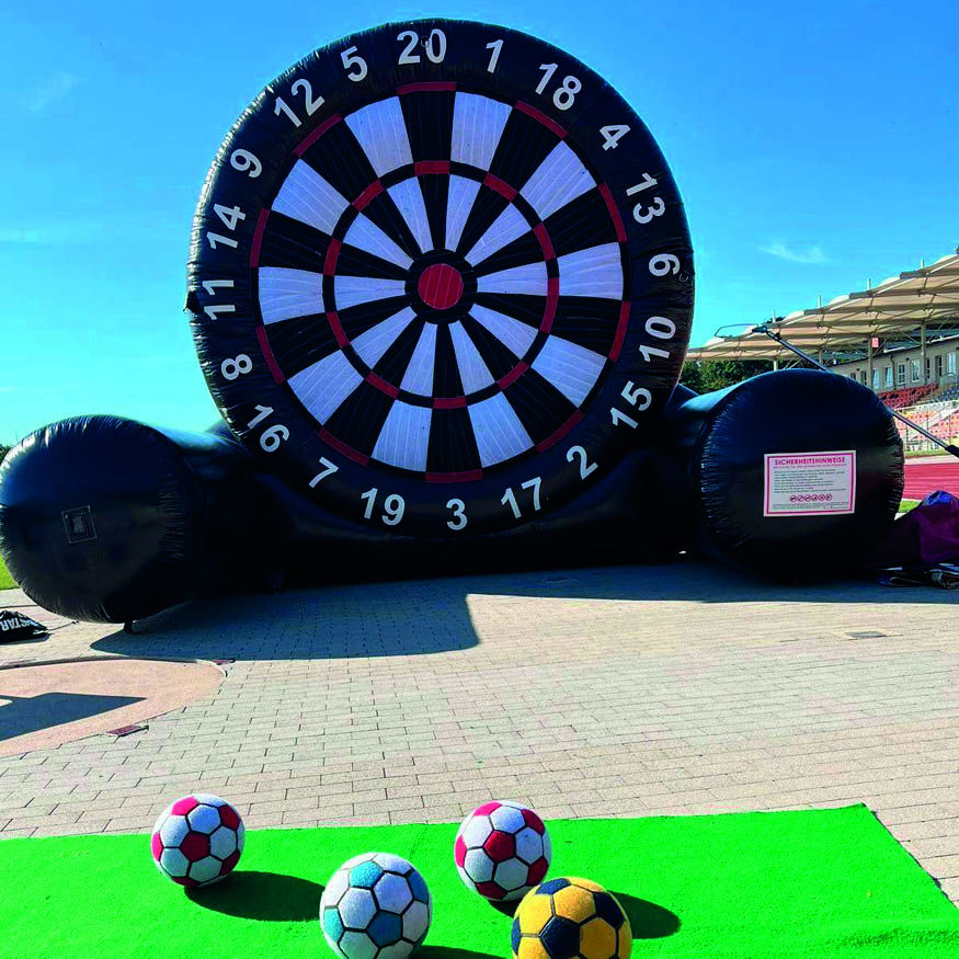 Die Fußballdarts XXl Wand vereint den Spaß am Fußball mit der Zielgenauigkeit des Dartssportes. Somit ist diese ein Hingucker auf jeder Veranstaltung. Im Set mit enthalten ist die Dartssscheibe mit Geläse und mehrere Klettbälle. Für sportliche Wettkämpfe ist die Dartsscheibe gut mit unserer Torwand oder dem Menschenkicker kombinierbar.